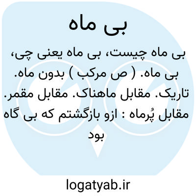 بی ماه. ( ص مرکب ) بدون ماه. تاریک. مقابل ماهناک. مقابل مقمر. مقابل پُرماه: