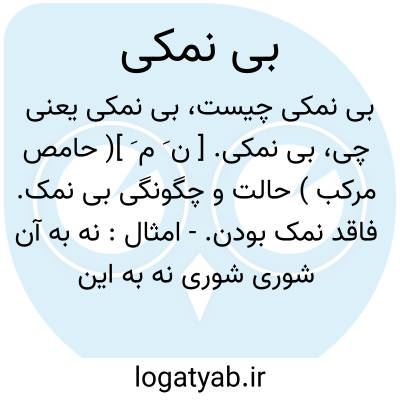نه بخیلی و خشم و بی نمکی.انوری.- بی نمکی شعر؛ سستی آن. ملاحت و جذابیت نداشتن آن: