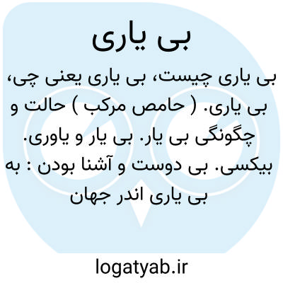 حالت و چگونگی بی یار ٠ بی یار و یاوری ٠ بیکسی بی دوست و آشنا بودن ٠ یا بی نظیری ٠ بیهمتایی ٠