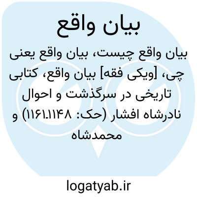 [ویکی فقه] بیان واقع، کتابی تاریخی در سرگذشت و احوال نادرشاه افشار (حک: ۱۱۴۸ـ۱۱۶۱) و محمدشاه گورکانی (حک: ۱۱۳۱ـ ۱۱۶۱) می باشد.
