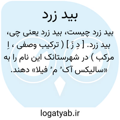 بید زرد. [ دِ زَ ] ( ترکیب وصفی، اِ مرکب ) در شهرستانک این نام را به «سالیکس آک ُ م ُ فیلا» دهند. ( یادداشت مؤلف ). گونه ای از درخت بید که در جنگلهای ارس و در کلاکهای میان شیراز و فیروزآباد فراوان است. رجوع به جنگل شناسی ج 1 ص 195 و گیاه شناسی گل گلاب ص 297 شود.، بیدزرد. [ زَ ] ( اِخ ) قریه ای است سی فرسنگی میانه جنوب و مشرق شیراز. ( از فارسنامه ناصری ).