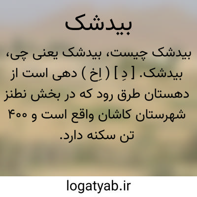 بیدشک. [ دِ ] ( اِخ ) دهی است از دهستان طرق رود که در بخش نطنز شهرستان کاشان واقع است و 400 تن سکنه دارد. ( از فرهنگ جغرافیائی ایران ج 3 ).