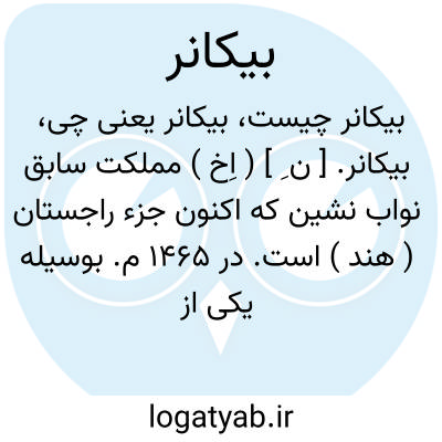 بیکانر. [ ن ِ ] ( اِخ ) مملکت سابق نواب نشین که اکنون جزء راجستان ( هند ) است. در 1465 م. بوسیله یکی از سرکردگان راجپوتها تأسیس گردید و کرسی آن بیکانر در 1485 بنا شد. ( از دائرة المعارف فارسی ).
