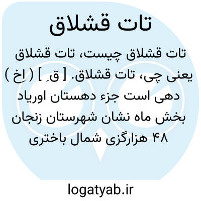 تات قشلاق. [ ق ِ ] ( اِخ ) دهی است جزء دهستان اوریاد بخش ماه نشان شهرستان زنجان 48 هزارگزی شمال باختری ماه نشان 27 هزارگزی راه عمومی، کوهستانی سردسیر با 422 تن سکنه آب آن از رودخانه علم کندی. محصول آنجا غلات بن شن، لبنیات، عسل، شغل اهالی زراعت و گله داری. صنایع دستی قالیچه و گلیم و جاجیم بافی، راه آن مالرو است. معادن مس و طلا در 5 هزارگزی شمال خاوری این ده کنار رودخانه واقع، قبل از 1320 اقدام به استخراج آن ها شده بود که بعد از آن تاریخ راکد ماند. ( از فرهنگ جغرافیائی ایران ج 2 ).