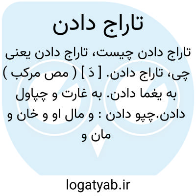 تاراج دادن. [ دَ ] ( مص مرکب ) به یغما دادن. به غارت و چپاول دادن.چپو دادن: و مال او و خان و مان و چهارپایان او را تاراج داد. ( فارسنامه ابن بلخی ص 103 ).