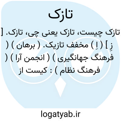 تازک. [ زِ ] ( اِ ) مخفف تازیک. ( برهان ) ( فرهنگ جهانگیری ) ( انجمن آرا ) ( فرهنگ نظام ):