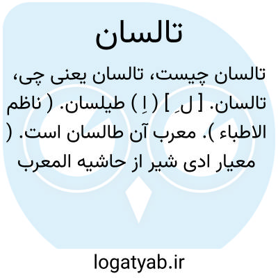 تالسان. [ ل ِ ] ( اِ ) طیلسان. ( ناظم الاطباء ). معرب آن طالسان است. ( معیار ادی شیر از حاشیه المعرب جوالیقی ). نوعی پوشش آدمی. ( اصمعی ). صاحب معیار گوید: لباسی است که بر دوش اندازند و لباسی است که بدن را احاطه کند و برش و دوزندگی ندارد. «ادی شیر» گوید: پوشش مدور و سبزرنگ است، قسمت فرودین ندارد، پود آن از پشم است و بزرگان علما آن را پوشند و آن ازلباس عجمان گرفته شده است. ( حاشیه المعرب جوالیقی ص 227 ). رجوع به طالسان و طیلسان و تالشان و فرهنگ شعوری و حاشیه برهان قاطع چ معین ذیل «طیلسان » شود.
