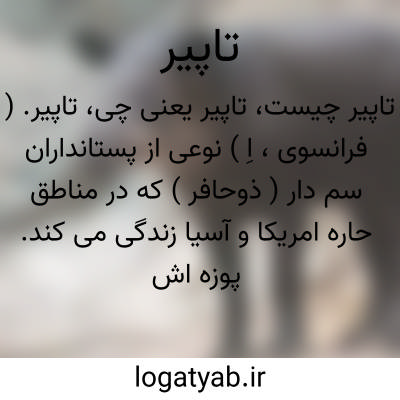تاپیر. ( فرانسوی، اِ ) نوعی از پستانداران سم دار ( ذوحافر ) که در مناطق حاره امریکا و آسیا زندگی می کند. پوزه اش مانند خرطوم آویخته است.