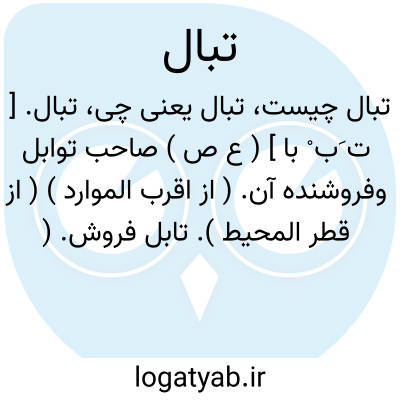 تبال. [ ت َب ْ با ] ( ع ص ) صاحب توابل وفروشنده آن. ( از اقرب الموارد ) ( از قطر المحیط ). تابل فروش. ( منتهی الارب ) ( آنندراج ). تابل فروش و دیگ افزارفروش. ( ناظم الاطباء ). رجوع به تابل و توابل شود.