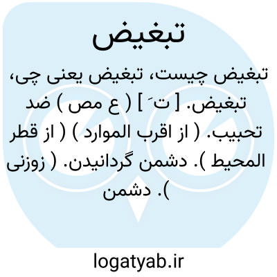 تبغیض. [ ت َ ] ( ع مص ) ضد تحبیب. ( از اقرب الموارد ) ( از قطر المحیط ). دشمن گردانیدن. ( زوزنی ). دشمن داشتن. ( دهار ). دشمن گردانیدن کسی را بر کسی.( منتهی الارب ) ( آنندراج ) ( ناظم الاطباء ):