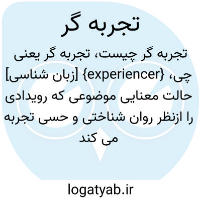{experiencer} [زبان شناسی] حالت معنایی موضوعی که رویدادی را ازنظر روان شناختی و حسی تجربه می کند