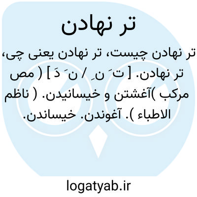 تر نهادن. [ ت َ ن ِ / ن َ دَ ] ( مص مرکب )آغشتن و خیسانیدن. ( ناظم الاطباء ). آغوندن. خیساندن. خیس کردن. نقوع. ( یادداشت بخط مرحوم دهخدا ): نقع الدواء فی الماء؛ تر نهاد دوا را در آب. ( منتهی الارب ).