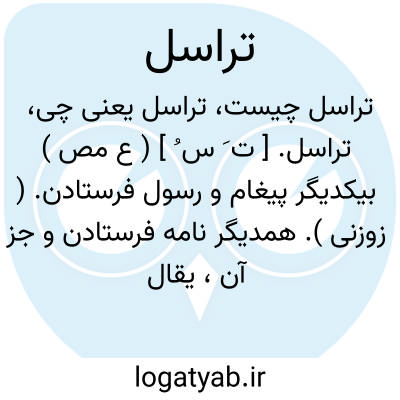 تراسل. [ ت َ س ُ ] ( ع مص ) بیکدیگر پیغام و رسول فرستادن. ( زوزنی ). همدیگر نامه فرستادن و جز آن، یقال تراسلوا؛ اذ ارسل بعضهم الی بعض. ( منتهی الارب ) ( از ناظم الاطباء ). همدیگر فرستادن نامه و جز آن. ( آنندراج ): تراسل القوم؛ ارسل بعضهم الی بعض و فعل مثلما یفعل الاَّخر علی وجه التتابع. ( اقرب الموارد ) ( المنجد ).
