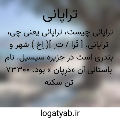 تراپانی. [ تْرا / ت ِ ]( اِخ ) شهر و بندری است در جزیره سیسیل. نام باستانی آن «دْرِپان » بود. 73300 تن سکنه دارد و معادن نمک و سنگ مرمر آن معروف است. قاموس الاعلام ترکی آرد: در هشتادهزارگزی مغرب ایالت پالرم واقع است. دارای ابنیه زیبا و تجارت پررونق است. محصولات مرجانی و عاجی و مخصوصاً لیمو و شراب آنجا مشهور است و معبد کهن و ویرانی دارد که به زهره، خداوند جمال منسوب است.
