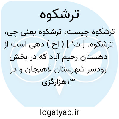 ترشکوه. [ ت ُ ] ( اِخ ) دهی است از دهستان شیرامین که در بخش دهخوارقان شهرستان تبریز و در 8هزارگزی جنوب بخش دهخوارقان و 5هزارگزی شوسه آذرشهر به مراغه قرار دارد. جلگه ای معتدل است و 62 تن سکنه دارد. آب آن از چشمه و محصول آنجا غلات و حبوبات و شغل اهالی زراعت و گله داری است.راه مالرو دارد. ( از فرهنگ جغرافیایی ایران ج 4 ).