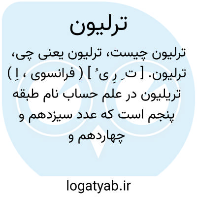 ترلیون. [ ت ِ رِ ی ُ ] ( فرانسوی، اِ ) تریلیون در علم حساب نام طبقه پنجم است که عدد سیزدهم و چهاردهم و پانزدهم باشد به این شکل: