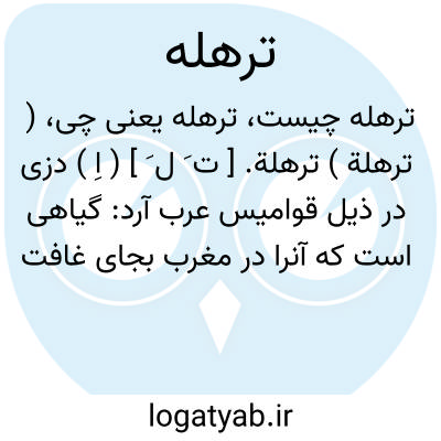 ( ترهلة ) ترهلة. [ ت َ ل َ ] ( اِ ) دزی در ذیل قوامیس عرب آرد: گیاهی است که آنرا در مغرب بجای غافت بکار برند پیش از آنکه این گیاه اخیر شناخته شده باشد. ولی مستعینی نام بربری غافت را ترملان یا ترهلان آورده است. ( دزی ج 1 ص 146 ). و رجوع به ترهلان شود.