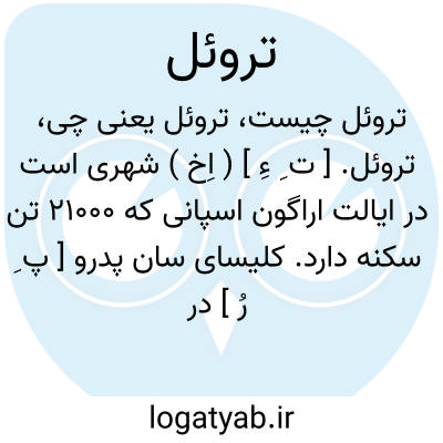 تروئل. [ ت ِ ءِ ] ( اِخ ) شهری است در ایالت اراگون اسپانی که 21000 تن سکنه دارد. کلیسای سان پدرو [ پ ِ رُ ] در آنجاست و در دوران جنگهای داخلی اسپانیا ( 1936 - 1939 م. ) این شهرنقش مؤثری داشت و جنگهای شدیدی در آنجا روی داد.