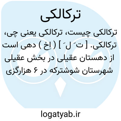 لغت نامه دهخدا به نقل از کتاب فرهنگ جغرافیای ایران جلد ۶ در مورد ترکالکی نوشته است، ترکالکی دهی است از دهستان عقیلی در توابع شهرستان گتوند که در شش هزار گزی شمال باختری روستای سماله و ۲۵۰۰۰ گزی شمال باختری راه شوسه شوشتر به مسجد سلیمان قرار دارد، کوهستانی و گرمسیر است و ۱۲۰۰ تن سکنه دارد و آب آن از رود کارون و چاه، محصول آن غله و پنبه است، شغل مردم آن زراعت و صنایع دستی آن قالی بافی است. راه مال رو و دبستان دارد و ساکنین آن از ایل بختیاری می باشد.