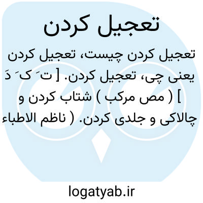 تعجیل به طب اندر باشد ز سبکساری.منوچهری.بسیار کالا و قماش آوردند و گفتند طغرل نیک تعجیل کرد. ( تاریخ بیهقی چ ادیب ص 617 ).