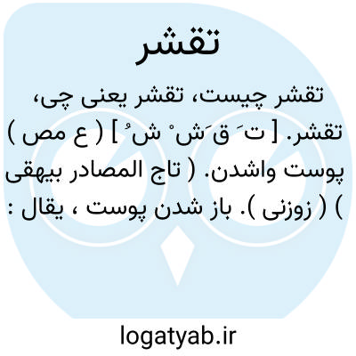 تقشر. [ ت َ ق َش ْ ش ُ ] ( ع مص ) پوست واشدن. ( تاج المصادر بیهقی ) ( زوزنی ). باز شدن پوست، یقال: قشره فتقشر. ( منتهی الارب ) ( آنندراج ) ( ناظم الاطباء ) ( از اقرب الموارد ). || ( اِ ) بیماریی است در انسان که چنان می پندارد که پوست از دل او باز میشود. چنانکه نزدیک بود که غش بر او عارض گردد. ( بحر الجواهر ).