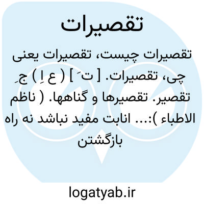 تقصیرات. [ ت َ ] ( ع اِ ) ج ِ تقصیر. تقصیرها و گناهها. ( ناظم الاطباء ):... انابت مفید نباشد نه راه بازگشتن مهیا و نه عذر تقصیرات خواستن مسموع. ( کلیله و دمنه )