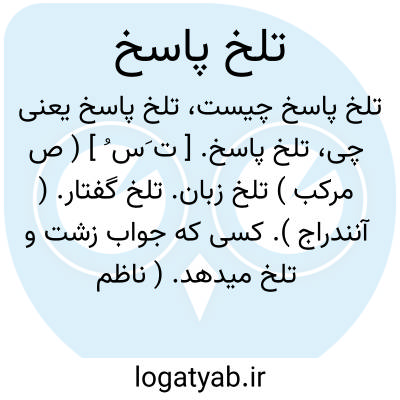 تلخ پاسخ. [ ت َس ُ ] ( ص مرکب ) تلخ زبان. تلخ گفتار. ( آنندراج ). کسی که جواب زشت و تلخ میدهد. ( ناظم الاطباء ):