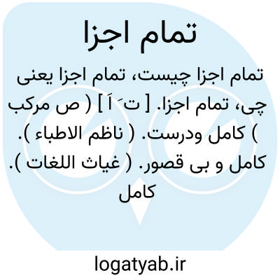 تمام اجزا. [ ت َ اَ ] ( ص مرکب ) کامل ودرست. ( ناظم الاطباء ). کامل و بی قصور. ( غیاث اللغات ). کامل و بی نقصان. تمام عیار. ( آنندراج ):