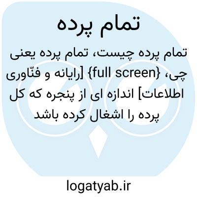 {full screen} [رایانه و فنّاوری اطلاعات] اندازه ای از پنجره که کل پرده را اشغال کرده باشد
