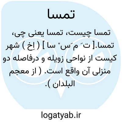 تمسا.[ ت َ م َس ْ سا ] ( اِخ ) شهر کیست از نواحی زویله و درفاصله دو منزلی آن واقع است. ( از معجم البلدان ).
