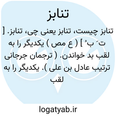 تنابز. [ ت َ ب ُ ] ( ع مص ) یکدیگر را به لقب بد خواندن. ( ترجمان جرجانی ترتیب عادل بن علی ). یکدیگر را به لقب خواندن. ( زوزنی، یادداشت به خط مرحوم دهخدا ) ( از اقرب الموارد ). لقب نهادن همدیگر را. || یکدیگر را عیب کردن. ( منتهی الارب ) ( ناظم الاطباء ) ( از آنندراج ) ( از اقرب الموارد ).