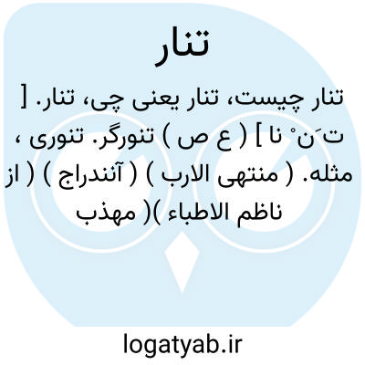 تنار. [ ت َن ْ نا ] ( ع ص ) تنورگر. تنوری، مثله. ( منتهی الارب ) ( آنندراج ) ( از ناظم الاطباء )( مهذب الاسماء ). سازنده تنور. ( از اقرب الموارد ).