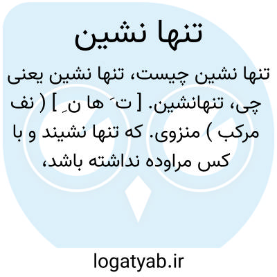تنهانشین. [ ت َ ها ن ِ ] ( نف مرکب ) منزوی. که تنها نشیند و با کس مراوده نداشته باشد، خواه به غرور و خودپسندی خواه به اعتزال: