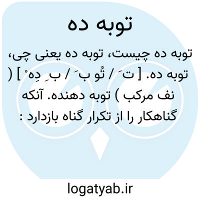 توبه ده. [ ت َ / تُو ب َ / ب ِ دِه ْ ] ( نف مرکب ) توبه دهنده. آنکه گناهکار را از تکرار گناه بازدارد:
