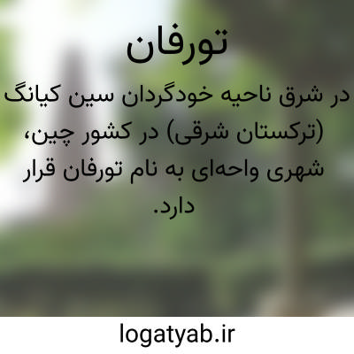 تورفان. ( اِخ ) شهری در ایالت شین چیان به ترکستان چین است که امروز خراب و اخیراً بعض رساله ها و الواح پهلوی از آن خرابه ها بدست آمده است که بیشتر راجع به دین مانی است. ( از یادداشتهای مرحوم دهخدا ). یکی از شهرهای ترکان ایغور در شمال شرقی ترکستان شرقی حالیه. ( فرهنگ فارسی معین ). تورفان ایالتی است از ترکستان چین در ناحیه کوهستانی تیانشان درشمال غربی چین و ذکر آن در تاریخ چین آمده است. آنجا در دست مردمی ایرانی و مانوی بوده بعدها ترکان بر آن دست یافته اند و تا دیری مرکز مانویان بود... ( سبک شناسی بهار ج 1 ص 38 ). رجوع به همین کتاب ص 18، 38، 41، 129 و 309 و ج 2 ص ب و ج 3 ص 167 و احوال و اشعار رودکی ج 1 ص 185 و 191 و مزدیسنا ص 314 و 321 و تاریخ مغول اقبال ص 8، 16، 18 و 110 و ایران در زمان ساسانیان ص 2 و تاریخ ایران باستان ج 3 ص 2265 شود.