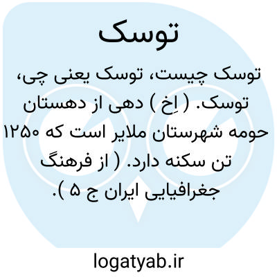 توسک. ( اِخ ) دهی از دهستان حومه شهرستان ملایر است که 1250 تن سکنه دارد. ( از فرهنگ جغرافیایی ایران ج 5 ).