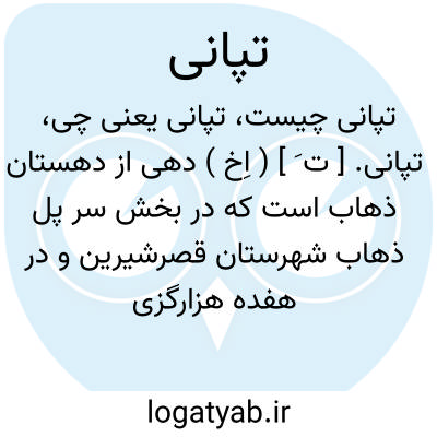تپانی. [ ت َ ] ( اِخ ) دهی از دهستان ذهاب است که در بخش سر پل ذهاب شهرستان قصرشیرین و در هفده هزارگزی شمال سر پل ذهاب و دو هزارگزی خاور راه فرعی به اویسی واقع است. دشتی است گرمسیر و مالاریائی و 150 تن سکنه دارد آب آن از رودخانه دله شیر و محصول آن غلات دیم و لبنیات و شغل اهالی آن زراعت و گله داری است. ( از فرهنگ جغرافیایی ایران ج 5 ).