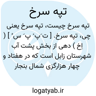 تپه سرخ. [ ت َپ ْ پ َ س ُ ] ( اِخ ) دهی از بخش پشت آب شهرستان زابل است که در هفتاد و چهار هزارگزی شمال بنجار و شش هزارگزی باختری راه مالرو شغالک به زابل واقع است. جلگه ای گرم و معتدل است و 205 تن سکنه دارد آب آن از رود هیرمند و محصول آن غلات و لبنیات و چرم گاو است و شغل اهالی آنجا زراعت و گله داری و گلیم و کرباس بافی است.راه مالرو دارد. ( از فرهنگ جغرافیایی ایران ج 8 ).