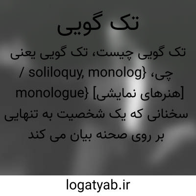 (یا: گفت وگوی با خود؛ حدیث نَفْس)در نمایش، اندیشیدن با صدای بُلند. تک گویی، گفتاری است برای استفادۀ تماشاگر/مخاطب و قاعدتاً در آن لحظه هیچ بازیگر دیگر حاضر در صحنه آن را نمی شنود.