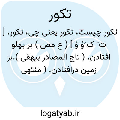 تکور. [ ت َ ک َوْ وُ ] ( ع مص ) بر پهلو افتادن. ( تاج المصادر بیهقی ).بر زمین درافتادن. ( منتهی الارب ) ( ناظم الاطباء ) ( آنندراج ) ( از اقرب الموارد ). || چکیدن ( منتهی الارب ) ( آنندراج ) ( ناظم الاطباء ). || دامن برچیدن. ( آنندراج ). دامن برچیدن مرد. ( از اقرب الموارد ). درچیده شدن «؟». ( منتهی الارب ) ( ناظم الاطباء ).