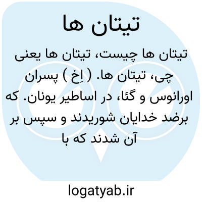 تیتان ها. ( اِخ ) پسران اورانوس و گئا، در اساطیر یونان. که برضد خدایان شوریدند و سپس بر آن شدند که با برهم نهادن کوهها نردبانی بسازند تا بدان وسیله به آسمان صعود کنند ولی ژوپیتر خدای خدایان آنان را سوزاند. ( لاروس ). رجوع به مزدیسنا ص 27 و قاموس الاعلام ترکی شود.
