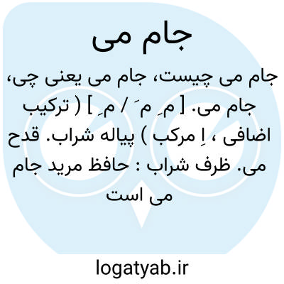 جام می. [ م ِ م َ / م ِ ] ( ترکیب اضافی، اِ مرکب ) پیاله شراب. قدح می. ظرف شراب: