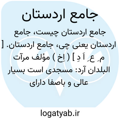 جامع اردستان. [ م ِ ع ِ اَ دِ ] ( اِخ ) مؤلف مرآت البلدان آرد: مسجدی است بسیار عالی و باصفا دارای چهار ایوان بزرگ و گنبد رفیعی شبیه گنبد حضرت امیرالمؤمنین ( ع ) در سمت قبله میباشد که بسیار خوش منظر است. درمسجد کتیبه هائی بخط کوفی وجود دارد و زیر صحن شبستان بزرگی وجود دارد و شش در دارد. بانی آن معلوم نیست و ظاهراً هشتصد سال پیش ساخته شده و در سمت غربی آن مدرسه و در سمت شرقی آن تکیه ای است و در محل اتصال بام مسجد به مدرسه مناره ای بلند است که در سر آن گلدسته ای وجود داشته و فعلا گلدسته خراب شده و مناره و آب انبار بزرگی دارد که در زمستان آب برای تمام تابستان و بهار ذخیره میکند. ( از مرآت البلدان ج 4 ص 96 ).