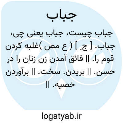 جباب. [ ج ِ ] ( ع مص )غلبه کردن قوم را. || فائق آمدن زن زنان را در حسن. || بریدن. سخت. || برآوردن خصیه. || گُشن دادن خرمابن را و فارغ شدن از تلقیح آن. ( منتهی الارب ). || ( اِ ) قحط سخت. ( منتهی الارب ) ( آنندراج ) ( ناظم الاطباء ).