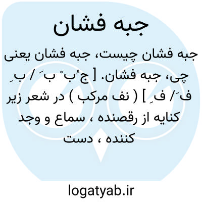 جبه فشان. [ ج ُب ْ ب َ / ب ِ ف َ/ ف ِ ] ( نف مرکب ) در شعر زیر کنایه از رقصنده، سماع و وجد کننده، دست افشان و دامن فشان است: