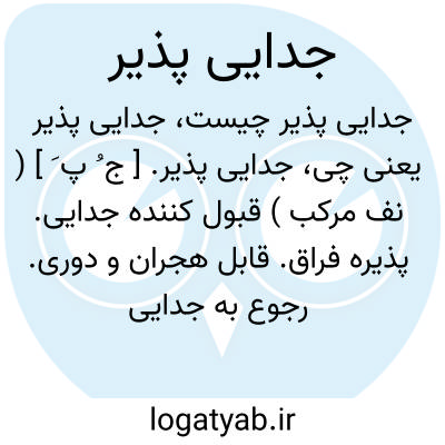 جدایی پذیر. [ ج ُ پ َ ] ( نف مرکب ) قبول کننده جدایی. پذیره فراق. قابل هجران و دوری. رجوع به جدایی شود.