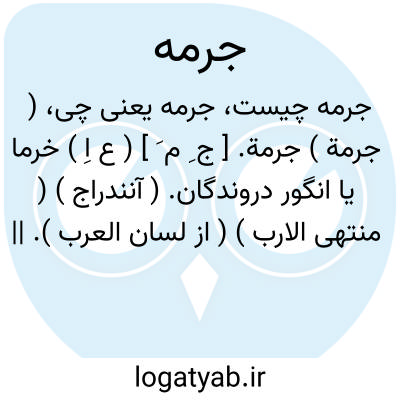 ( جرمة ) جرمة. [ ج ِ م َ ] ( ع اِ ) خرما یا انگور دروندگان. ( آنندراج ) ( منتهی الارب ) ( از لسان العرب ). || آنچه از خرمای نارس چیده شود. ( از لسان ) ( از تاج العروس ). کونلک خرما. ( مهذب الاسماء خطی ). || یک گله شتر مقدار سی عدد. ( منتهی الارب ) ( آنندراج ). || گناه. ( منتهی الارب ). || حرز و اندازه کنندگان بار خرما بر درخت. ( آنندراج ) ( منتهی الارب ).