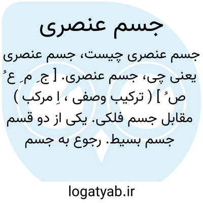 جسم عنصری. [ ج ِ م ِ ع ُ ص ُ ] ( ترکیب وصفی، اِ مرکب ) مقابل جسم فلکی. یکی از دو قسم جسم بسیط. رجوع به جسم فلکی و کشاف اصطلاحات الفنون شود.