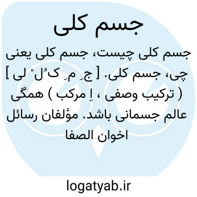 جسم کلی. [ ج ِ م ِ ک ُل ْ لی ] ( ترکیب وصفی، اِ مرکب ) همگی عالم جسمانی باشد. مؤلفان رسائل اخوان الصفا آرند: «اذا افاضت قوی النفس الکلیة الفلکیة الجسم الکلی الذی هو جملة العالم الجسمانی ». ( از فرهنگ سجادی ).