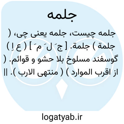 ( جلمة ) جلمة. [ ج َ ل َ م َ ] ( ع اِ ) گوسفند مسلوخ بلا حشو و قوائم. ( از اقرب الموارد ) ( منتهی الارب ). || همه. ( منتهی الارب ). جمیع چیزی. ( از اقرب الموارد ).